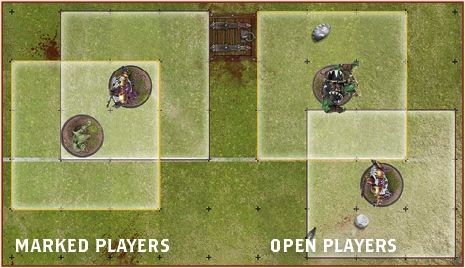 A player that is not being Marked, i.e., a player that is not within the Tackle Zone of any opposition players (as described below), is said to be 'Open'. Open players can move freely and perform actions more easily, free from the interference of opposition players.