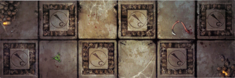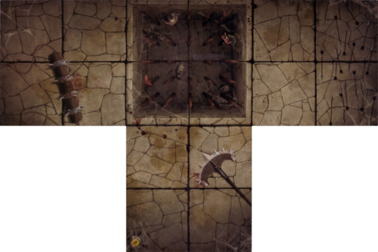 The Spike Pit is a 2 square by 2 square feature in this room. The Spike Pit can only be crossed by Jumping as described on page 37 of the Dungeon Bowl Rulebook, except that if they are successful they will land in an unoccupied square on another side of the pit. If the player fails the Agility test to Jump across the pit, they will Fall Over in the Spike Pit square closest to the target square.