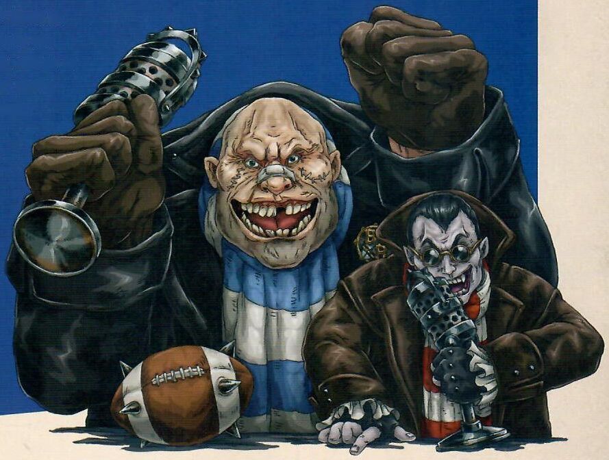 "Often quite literally, Bob! Anyway, today marks the first ever broadcast of Gutter Bowl on Cabalvision and the final of the 2501 unofficial Gutter Bowl Championship. The Mage Street Manticores, of The Manticore's Claw tavern in eastern Nuln, take on their sewer-dwelling rivals, the Under-Nuln Undertakers, in an epic clash!"
