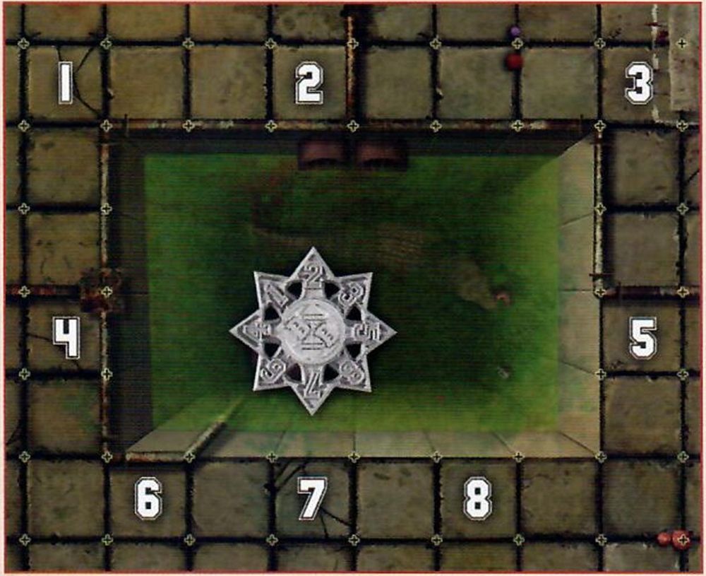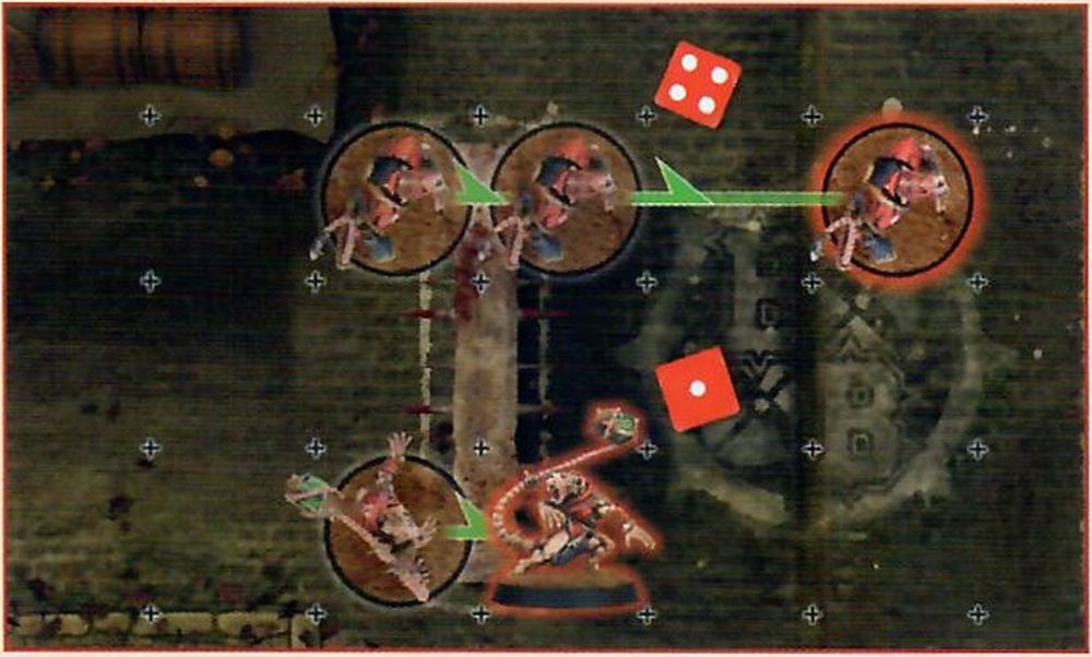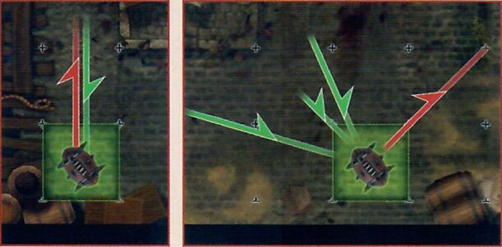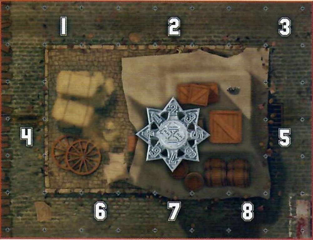 If the kick deviates onto either of these features, then it will need to re-enter play: either it will bounce off the stalls and into play, or something in the sewers will help it back onto the pitch! To do this, place the Random Direction template over the ball and roll a D8. Move the ball in the direction rolled the minimum distance so that it is back on the pitch; this is where it will land.