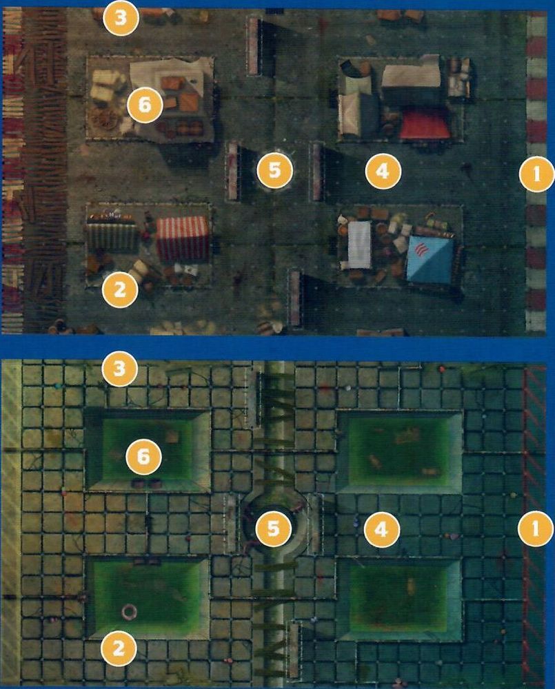| 11 | 'Fresh' Sewage: The latrines in the city above have all been emptied, and the waste is rushing down the sewer, with those playing risking getting showered in yesterday's lunch. Any player within 2 squares of a sewer pit is immediately Placed Prone. |