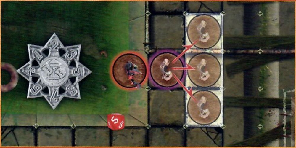 On a 1-2, the spell will hit the closest player to the target player regardless of which team they are on. If there are multiple players that are closest to the target player, randomly determine which of them has been hit. The player that is hit by the spell is immediately Knocked Down.