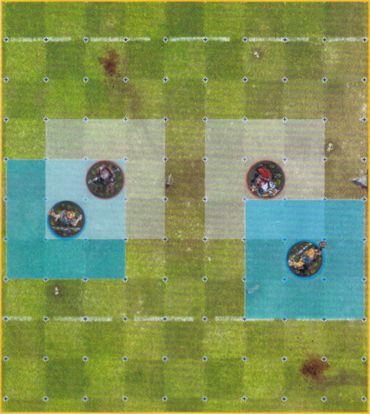 Players will use their Tackle Zone to interfere with opposition players. If a player has any opposition players in their Tackle Zone, regardless of the status of the opposition player, then they are said to be Marking that player. Conversely, if a player is within the Tackle Zone of an opposing player, then they are said to be Marked by that player. This will usually mean that a player that is Marking an opposing Standing player will also be Marked by that player as well.