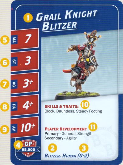 This is how physically strong the player is. The higher the value, the stronger the player is. Strength is used during a Block Action, which is detailed on page 60.