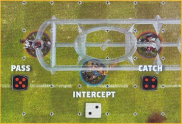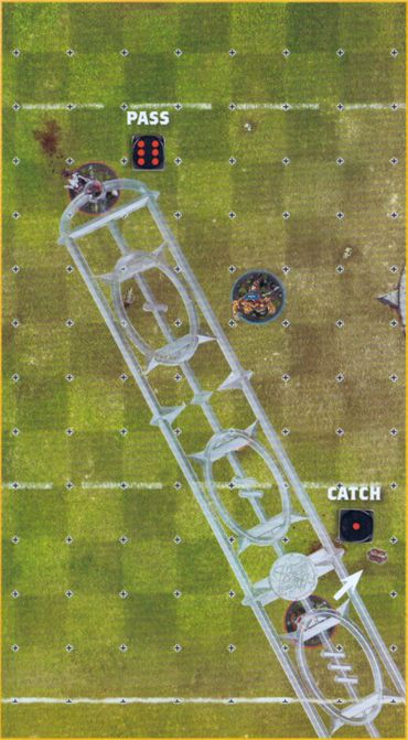 If there is a player in that square, they may immediately try to Catch the ball by making an Agility Test. If the test is passed, they will immediately gain possession of the ball. If the test is failed, then the ball will immediately Bounce from that square.