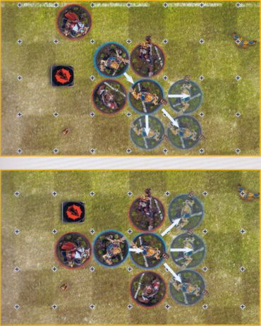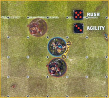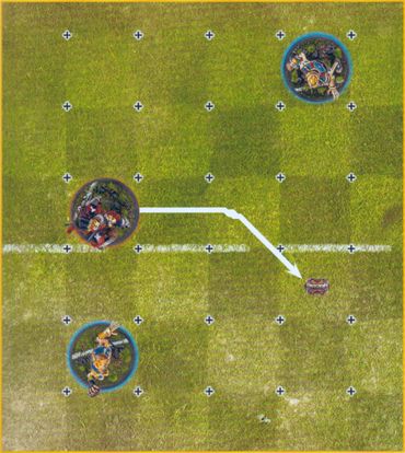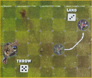 For example: The Treeman is attempting a Throw Team-mate Action and has picked up their Gnome team-mate. After using the Range Ruler it is determined that this is a Short Throw. The Treeman makes a Passing Ability Test, applying a -1 modifier for making a Short Throw, and rolls a 5 - a Superb Throw! The Gnome will now Scatter (3) from their target square, rolling a 5, a 3 and a 2. They must now attempt to land safely by making an Agility Test. The Gnome rolls a 3, which is a success as there are no modifiers in this instance. The Gnome lands on their feet, and can activate later in the Turn if they have not already done so.